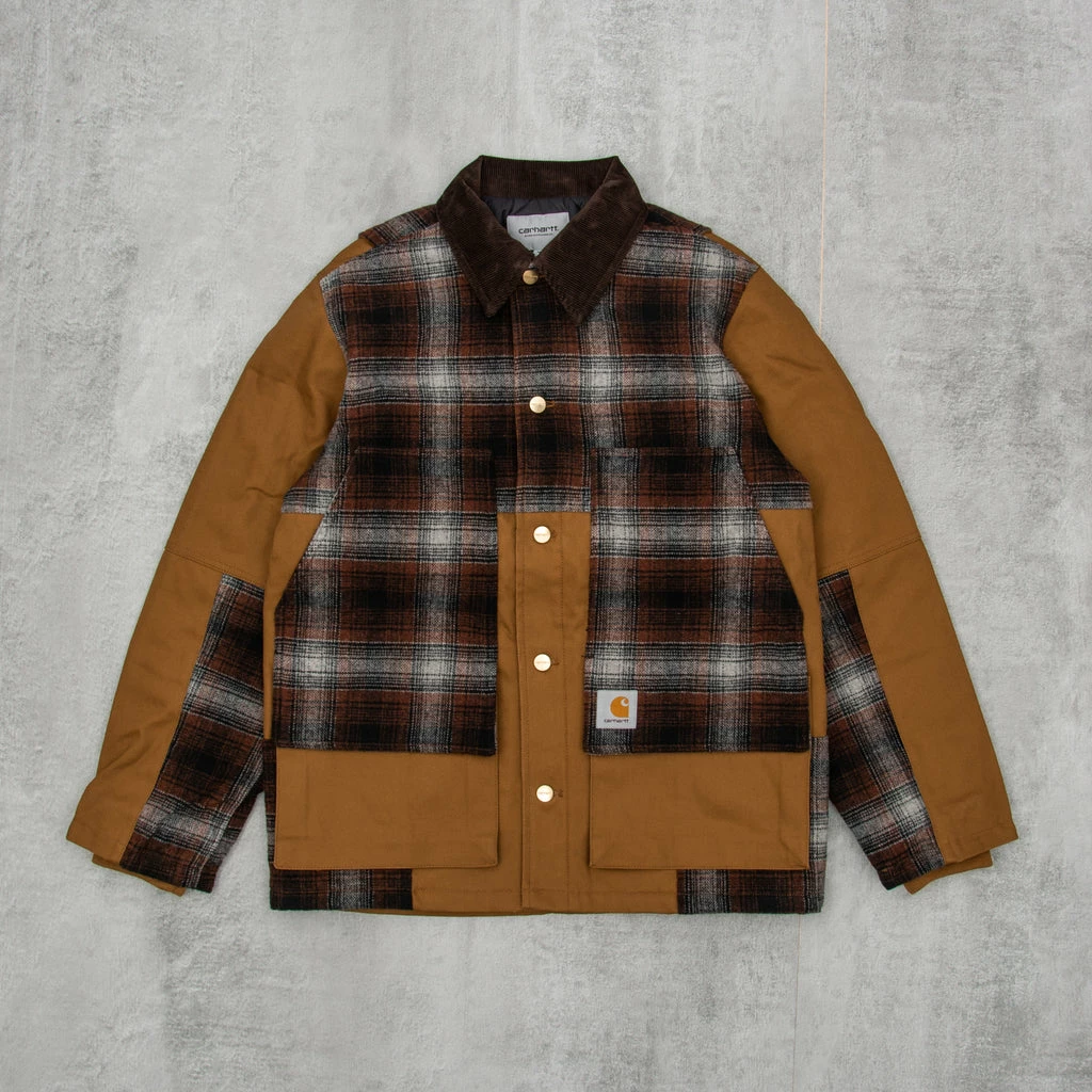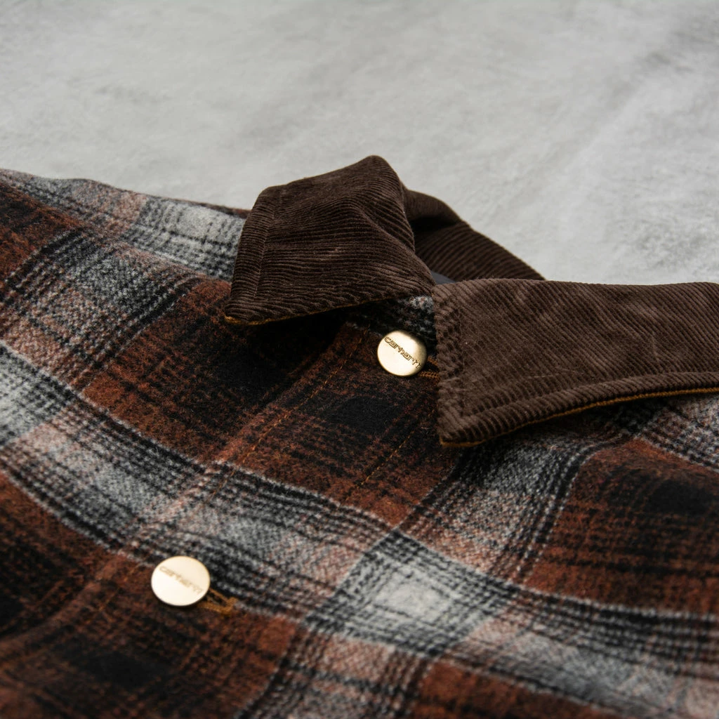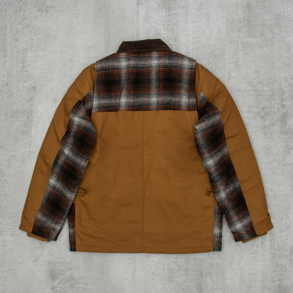The Carhartt Highland Jacket in Hamilton Brown / Highland Check Offroad is an absolutely stunning piece of kit. Owing its origins to classic hunting jackets, this deadly catch is constructed from a heavyweight poly-wool blend fabric, which has been yarn dyed in a seasonal check. A diamond quilted nylon taffeta lining and rib-knit storm cuffs add additional winterising properties and superior warmth.