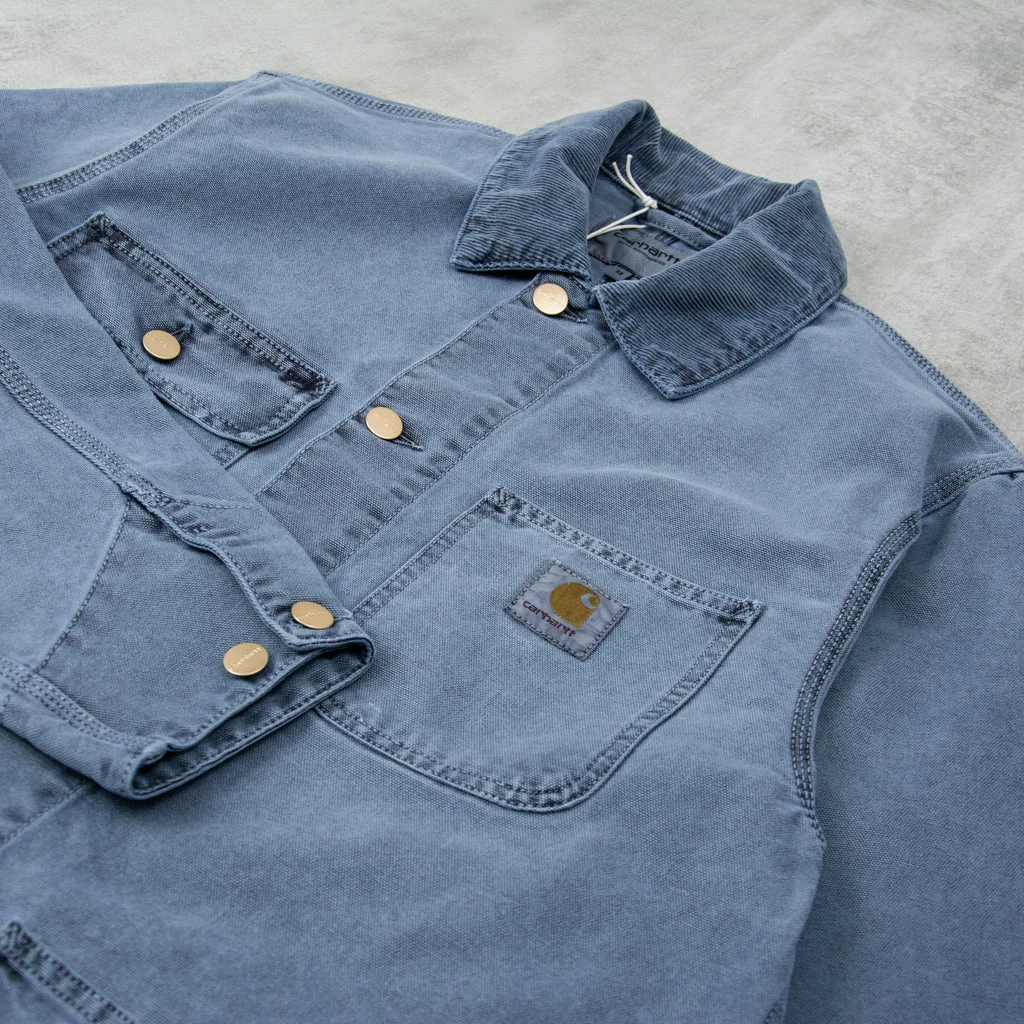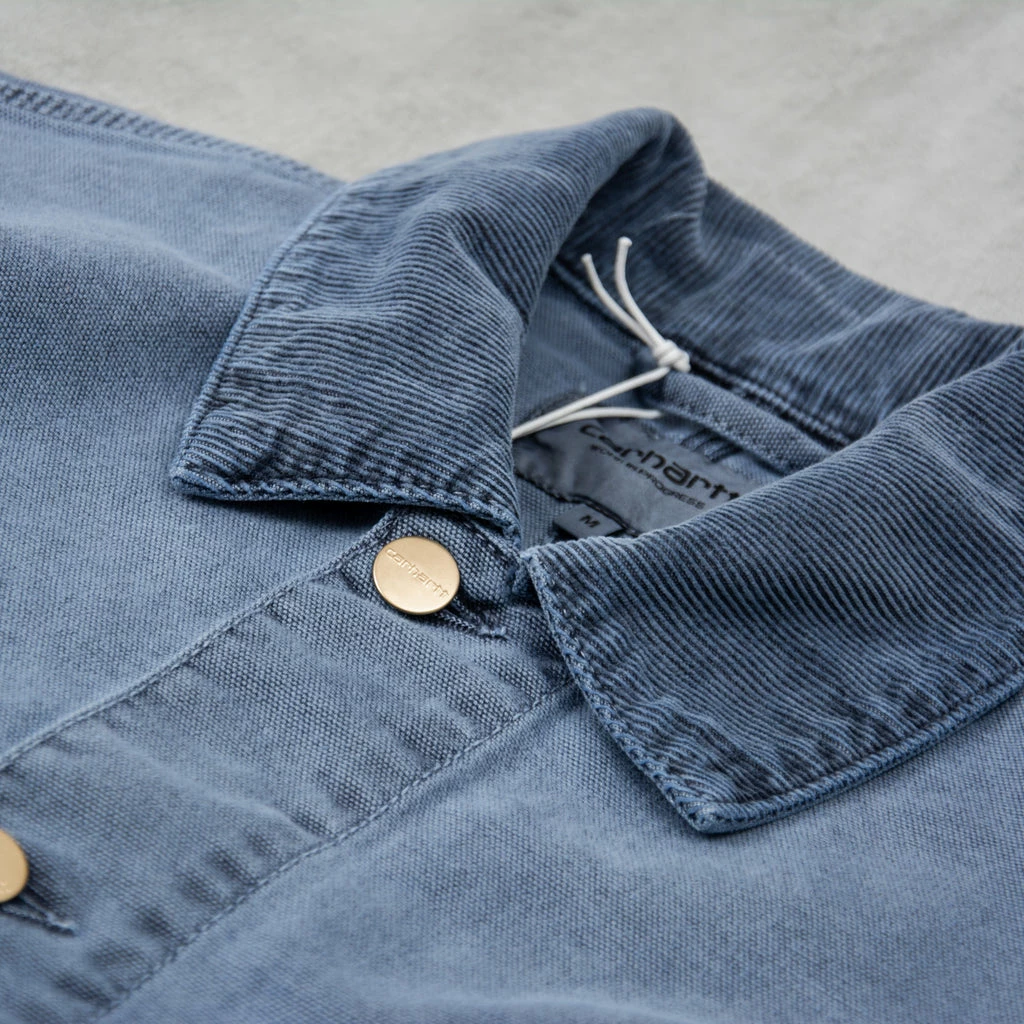 Carhartt WIP MIchigan Coat – a classic chore coat silhouette, constructed in our hard-wearing ‘Dearborn Canvas’. This fabric is now created from organic cotton – but is just as robust as previous iterations. The canvas fabric will soften with wear, creating a jacket with a fit that is unique to you. Contrast button and rivet detailing draws from a classic workwear aesthetic. Standard sizing.